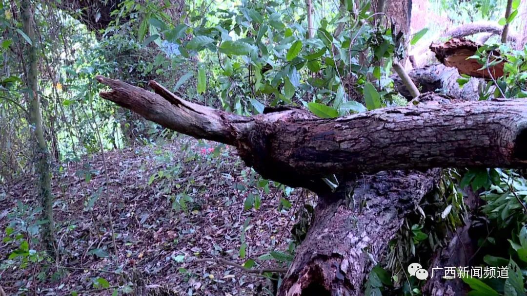 ”南宁市兴宁区应急救援综合大队副大队长 李平生:我发现古樟树有点倒塌的苗头那种,我也喊快跑,那个树干就突然倒塌下来,就砸中他的右小腿。