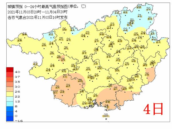 广西气象台4日05时发布预报: