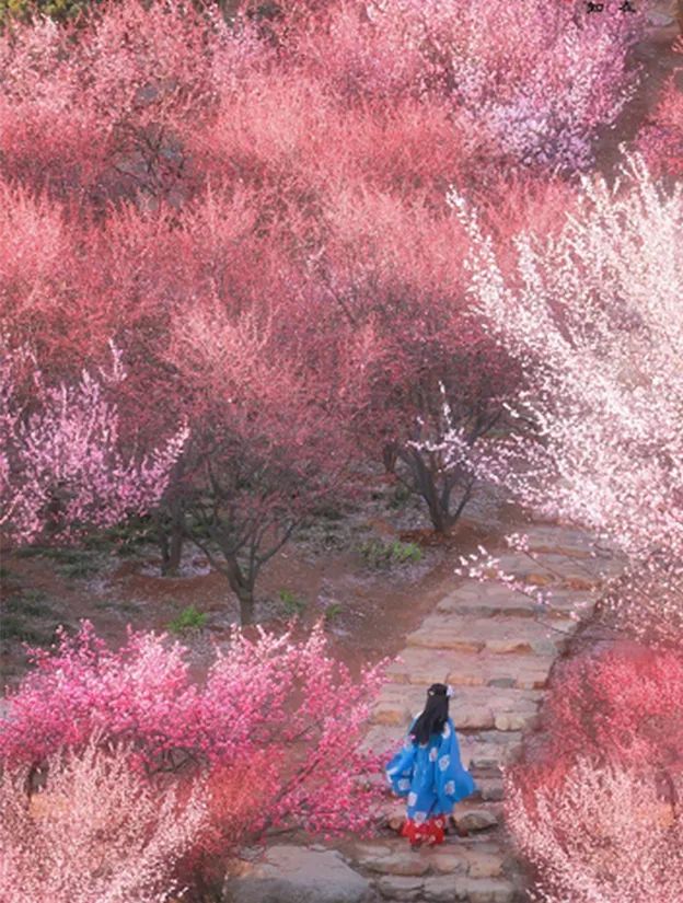 共享菜园向南步行500米网红打卡点紫荆花步道、桃花林“山上层层桃李花,云间烟火是人家。”