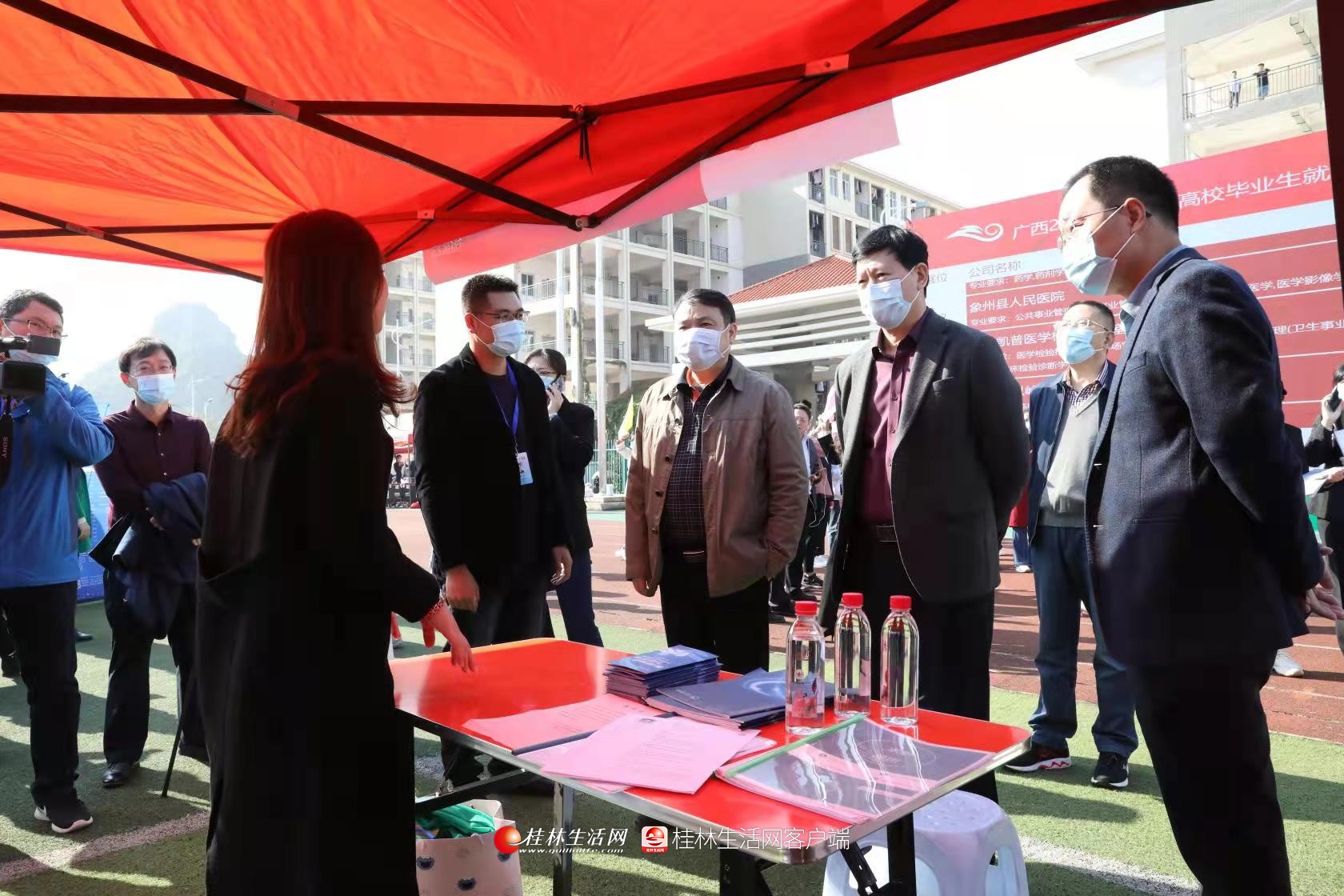 近500家医药卫生类单位进场,2万多个优质岗位虚席以待,5000余名学子应聘……11月13日上午,由自治区教育厅主办、桂林医学院承办的2022届广西医药类高校毕业生就业双向选择洽谈会(桂林专场)(以下简称双选会)桂林医学院临桂校区运动场盛大举行。这场首次在桂林举办的全区医药类高校毕业生专场双选会吸引全国51个地市的各级医院、企事业单位参加,对精准施策抓好就业创业工作,为毕业生求职提供方便、高效、快捷的人才交流平台和服务通道起到积极的促进作用。