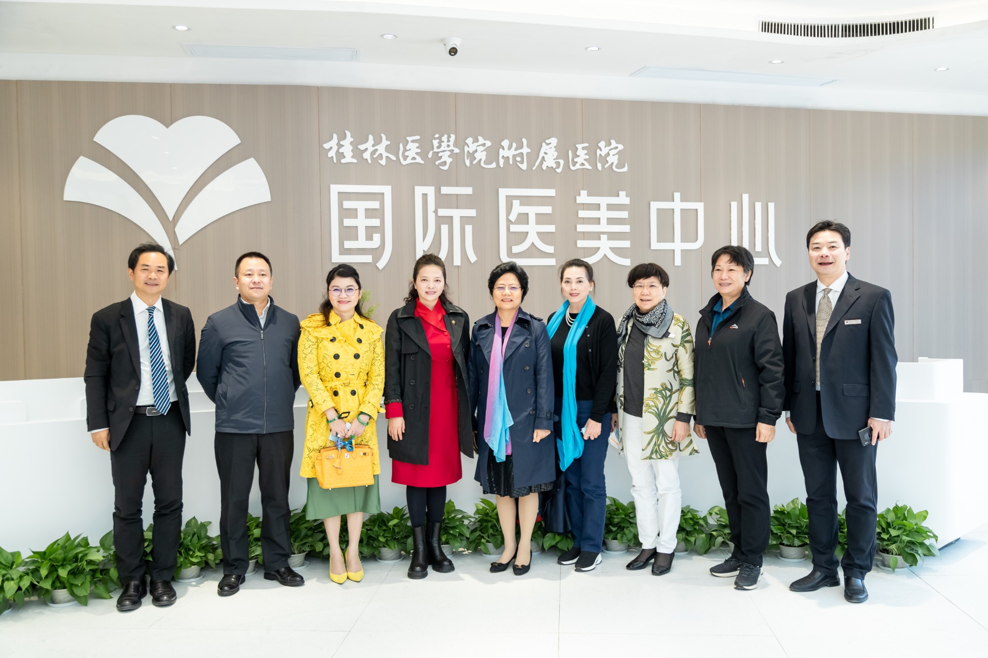 自治区政协副主席、自治区工商联主席磨长英,自治区工商联副主席李丽,桂林市委常委、常务副市长钟洪,著名央视制片人、主持人、国家一级演员文清,自治区政协常委、广西总商会副会长杨英,广西师范大学副校长黄文韬,桂林电子科技大学副校长钟平,桂林旅游学院副校长陈贵超,桂林航天工业学院副校长罗国湘,广西整形美容协会会长欧波,以及桂林理工大学,桂林师范高等专科学校,桂林市部分委办局、县区、协会,驻桂商会,各银行、旅游、媒体、企业、兄弟医院的领导和嘉宾出席仪式。