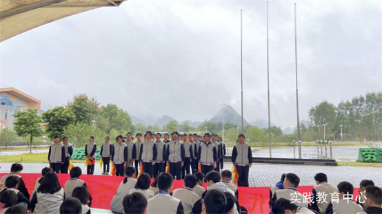 仪式上,高2110班廖欣雯同学在国旗下进行了学生代表发言。随后,2010班的同学们进行了校风采展示——《少年中国》。随着开营仪式的结束,同学们为期四天的素质实践生活正式拉开帷幕。