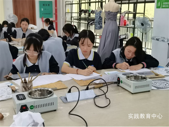 蜡染的制作方法是用蜡刀蘸熔蜡,绘画于布后以染料浸染,既染去蜡,布面就呈现出有颜色的多种图案,同时,在浸染中,作为防染剂的蜡自然龟裂,使布面呈现特殊的“冰纹”,尤具魅力。传统蜡染工艺是先辈们一代代钻研并传承下来的文化瑰宝,是中华民族历史文化长河中灿若繁星的非物质文化遗产之一。我们体验手工蜡染,不仅是为了了解和感受传统艺术,同时能够培养和增强同学们的文化自信,更是为了传承和延续传统文化精神,成为通晓中国文化、讲好中国故事一代青年。