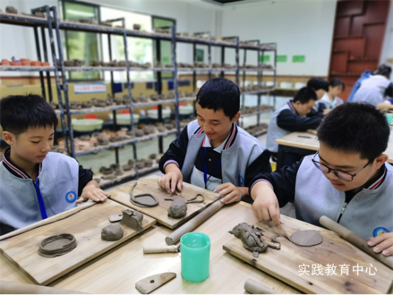 在陶艺课堂上,经过对陶艺作品的欣赏、知识点的学习,通过老师对揉、搓、捏、拧、接、压等不同陶艺技法的讲解和制作演示,同学们在老师的引领和指导下进行陶艺制作,切身感受到了陶瓷文化的艺术魅力。陶艺创作让同学们在享受玩泥的快乐中体会了古老陶艺的厚重和其中的韵味。这项活动不仅提高了同学们的审美能力,还极大激发了他们的动手能力和创造力。