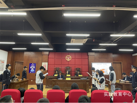 由同学们扮演审判员、书记员、司法警察、公诉人、辩护人、被告人等角色,模拟法庭上以情景剧的方式,模拟进行了一场法庭庭审,以案释法,以案普法。整个模拟法庭现场逼真,同学们表演得惟妙惟肖,从宣布法庭纪律、核对被告人身份,到法庭调查、法庭辩论、当事人作最后陈述,直至当庭宣判、法庭教育,模拟法庭真实再现审判庭审基本过程。同学们零距离感受到法庭的威严,对庭审过程有了更加深入的了解,进一步增强了自身对法律的崇尚与敬畏。