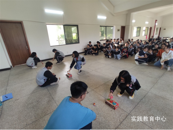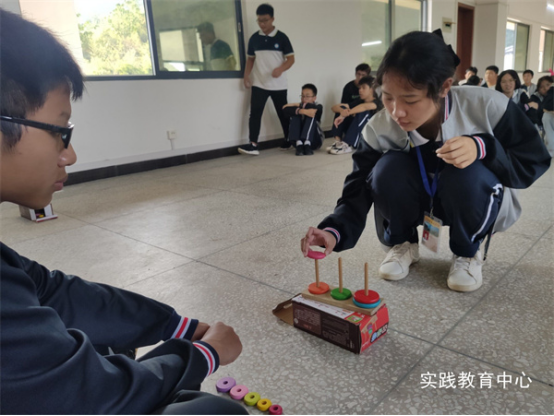 为了增强同学们的团队凝聚力,培养不畏困难、勇于向前的团队精神,加强同学们的交流互动,实践教育中心还为大家准备了丰富多样的素质拓展团队活动。“神笔马良”要求团队在一定时间内根据所需材料制作完成一个团队毛笔,要求同学们不能接触毛笔的情况下,共同练习写出事先商定的字。这是一个极其考验默契的游戏,随着队员的肢体来控制笔的走向。在汉诺塔的移动游戏中,同学们了解了规律以及简单了解递归算法,既培养了同学们的观察能力、动手能力和逻辑推理能力,也充分展现了同学们积极进取、团结协作、勇于拼搏的精神风貌。