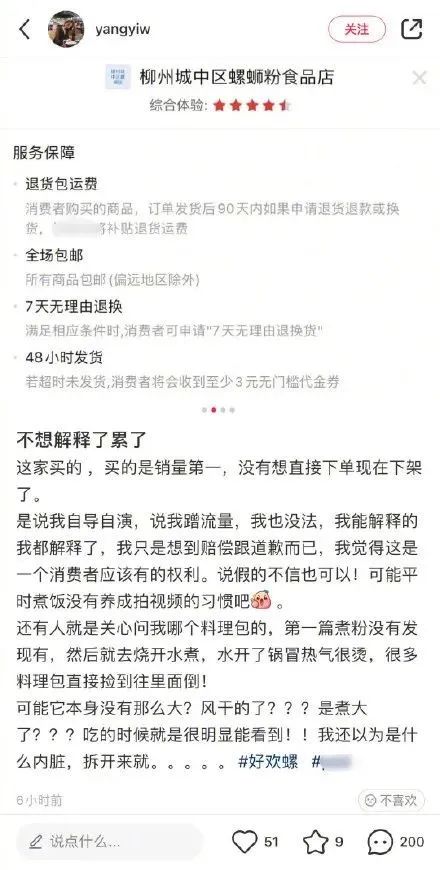 网友:“我真的很爱你们家的螺蛳粉 很好吃 但是这件事真的让人很不放心。如果是恶意诋毁请找到证据公之于众让我放心好吗”。
