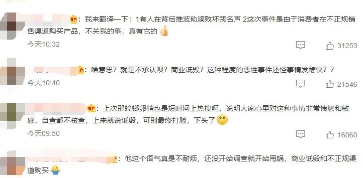 网友:“我真的是你们家老客户了,有问题查问题不要想着逃避和洗白,如果是恶意中伤那就拿起法律武器保护好自己,要做到公开透明这才能让人信服。”