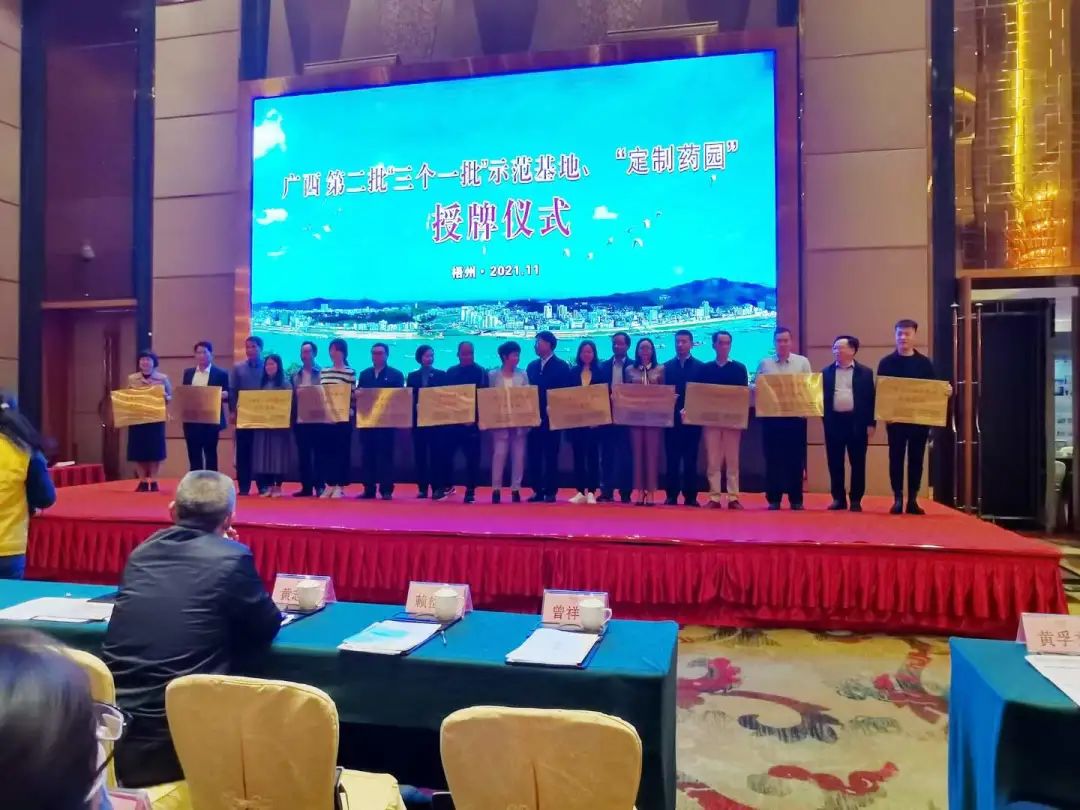 由广西壮族自治区中医药管理局等7部门审定的“广西第二批中药材示范基地”,今日在梧州市举行授牌仪式,永福罗汉果榜上有名,广西永福福中福罗汉果有限公司负责人韦新连参加仪式并代表接收牌匾。
