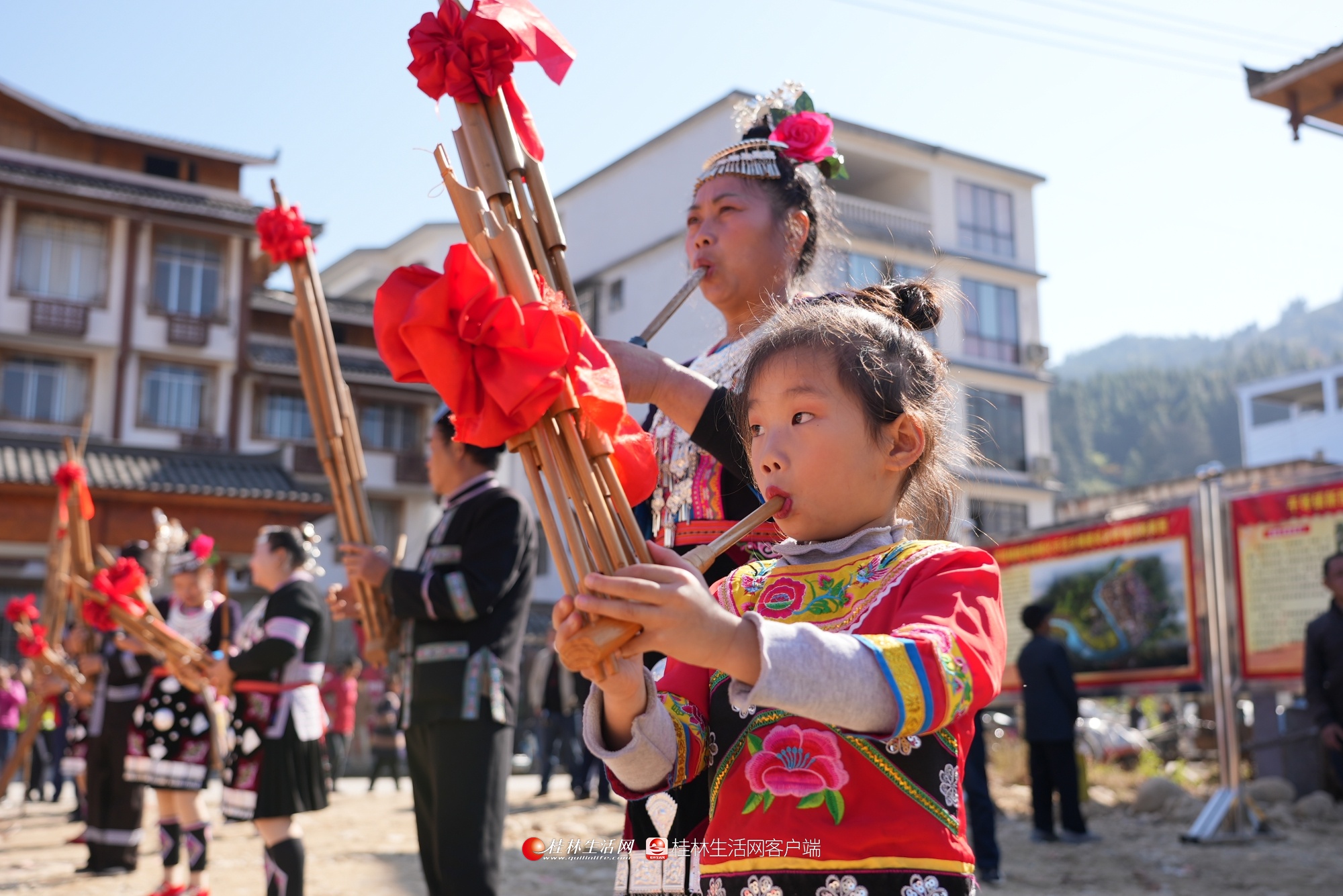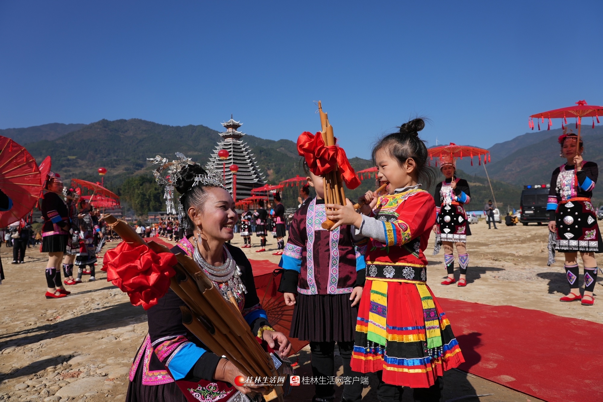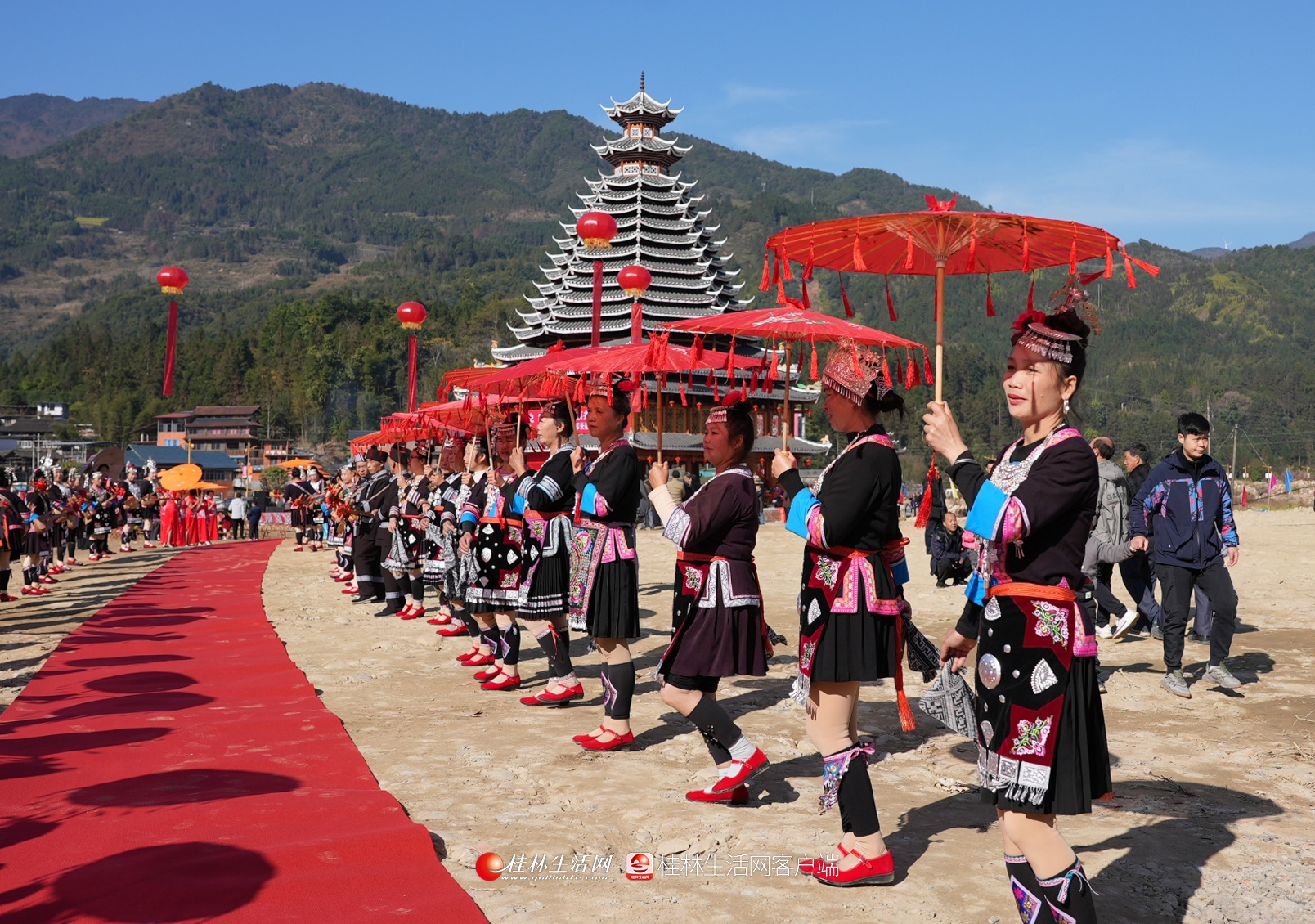 12月4日,恰逢侗族群众的侗年节,平等镇平等村举行2021年首届“红色侗乡‘月耶’平等”暨红军长征过龙胜纪念活动。当地侗族群众身着节日盛装,欢聚一堂,开展琵琶歌弹唱、芦笙踩堂、唱侗族大歌、跳团圆舞等民俗活动,载歌载舞欢度节日。