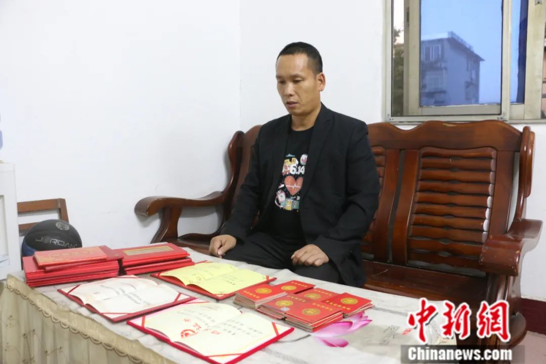 十余年来,因长期自费献血,覃国际过着清贫的生活。12月7日,记者得知覃国际患病后,再次来到他家中。在他租住的房子里,破旧的衣柜放着数十本红色献血证和荣誉证书,显得格外醒目。