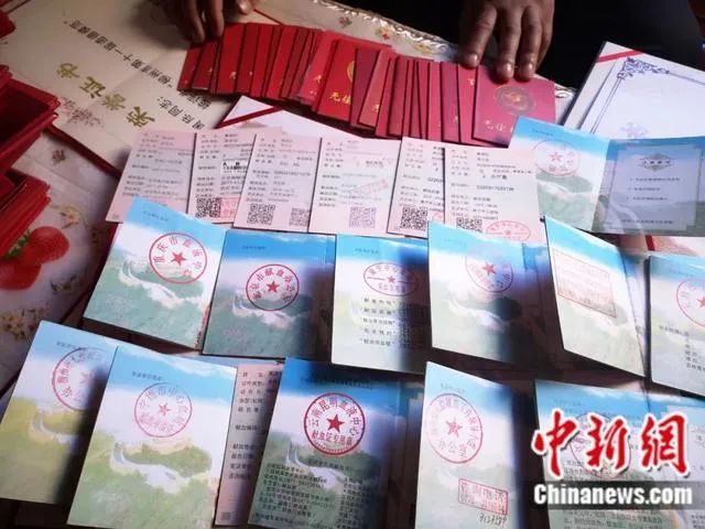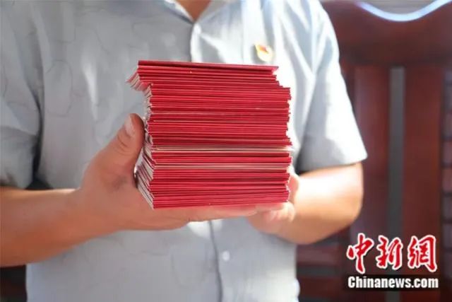 覃国际捧着厚厚一沓献血证。林馨 摄