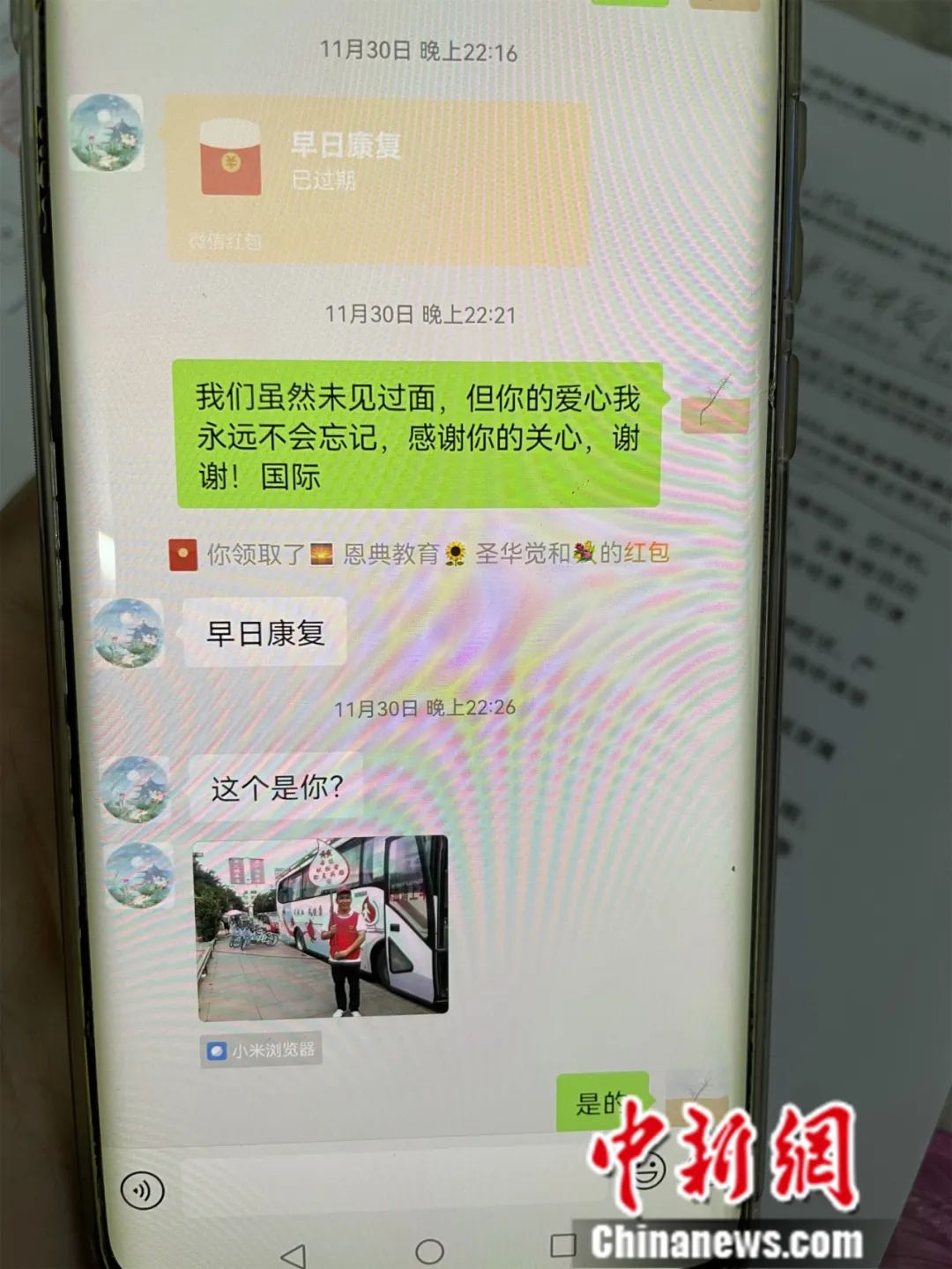 消息一发布后,全国各地的热心人纷纷捐出善款,并为覃国际加油打气。“好人有好报”“好人一生平安”“愿善良的人被温柔以待”承载着网友美好祝愿的留言不断从四面涌来……“每天很多素不相识的人给我打电话、加我微信,给我捐款,感受到了大家满满的善意。”覃国际说,这些善意支撑着他积极面对病魔。