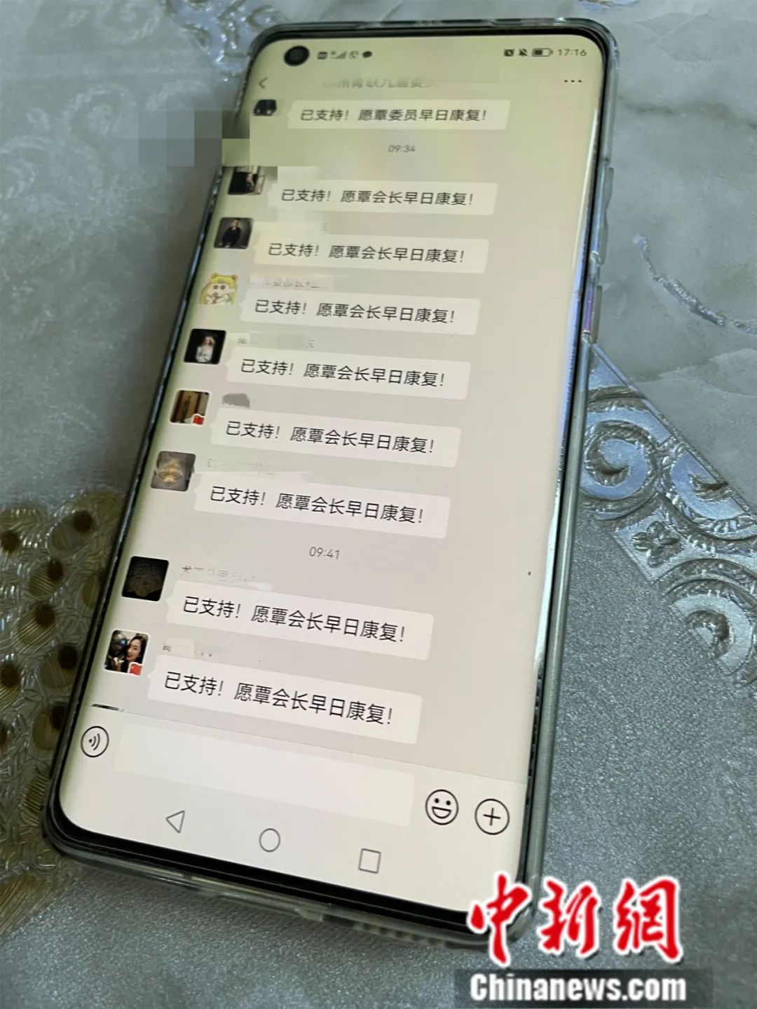 图为素不相识的网友为其加油鼓励。林馨 摄