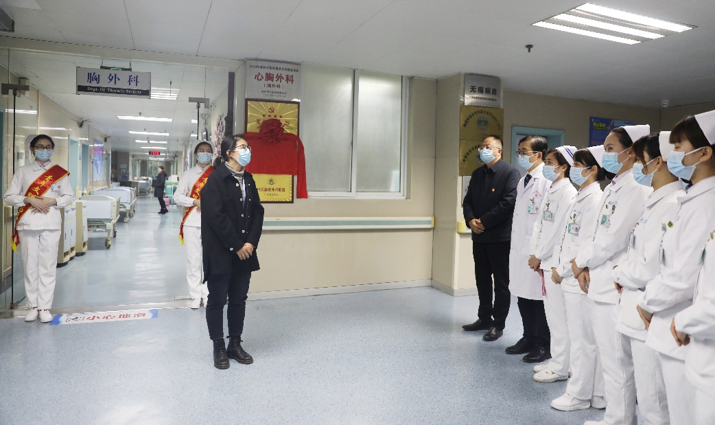 胸外科青年文明号号长刘文主持揭牌仪式