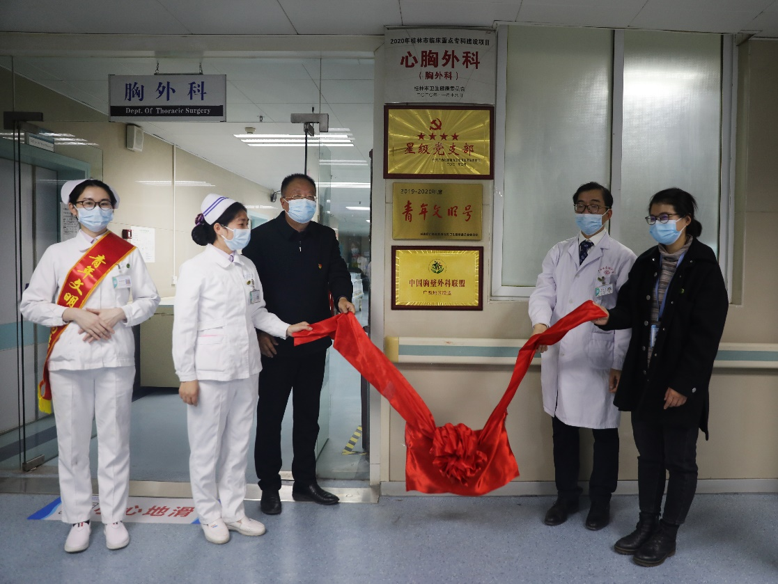 自治区南溪山医院领导与该院胸外科青年文明号成员共同揭牌