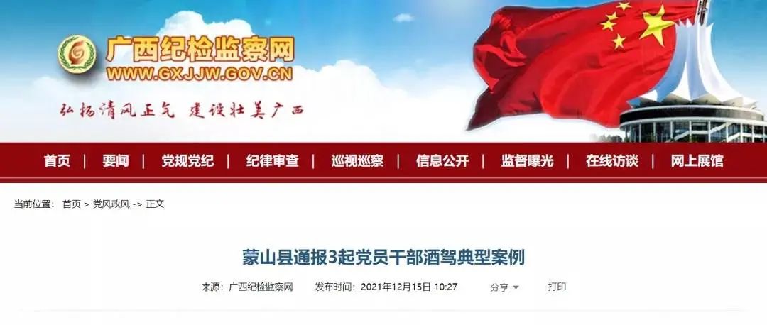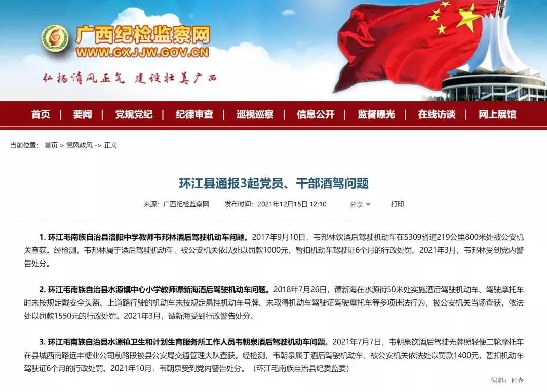 环江毛南族自治县通报3起党员、干部酒驾问题