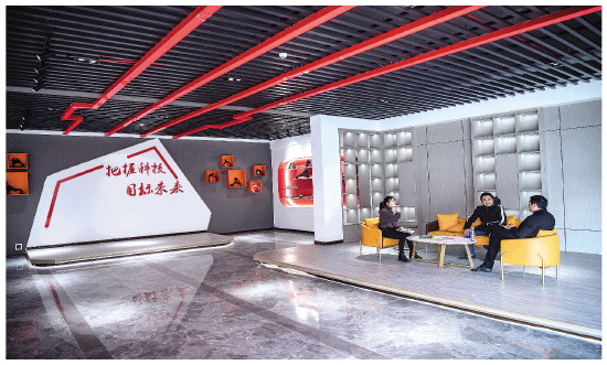 一家入驻企业的大厅装修得很有科技感。