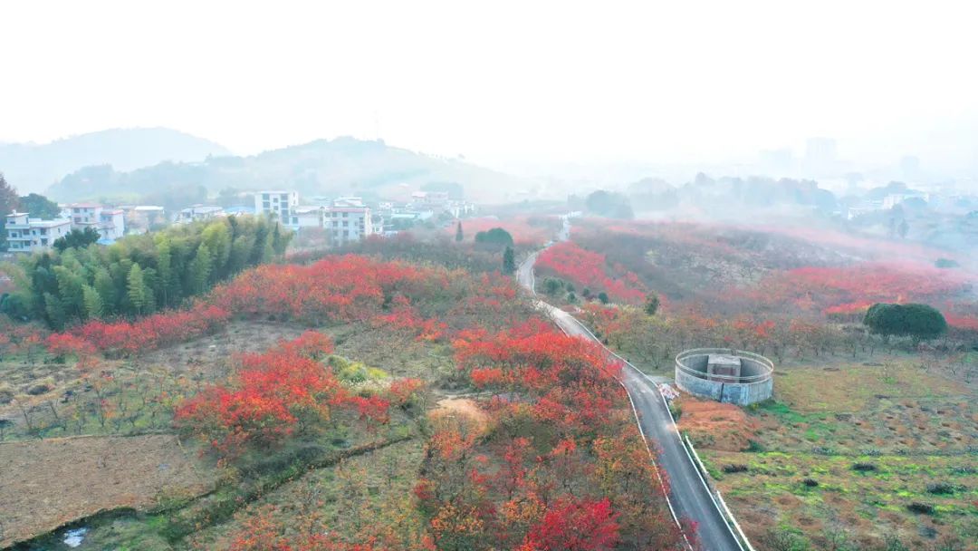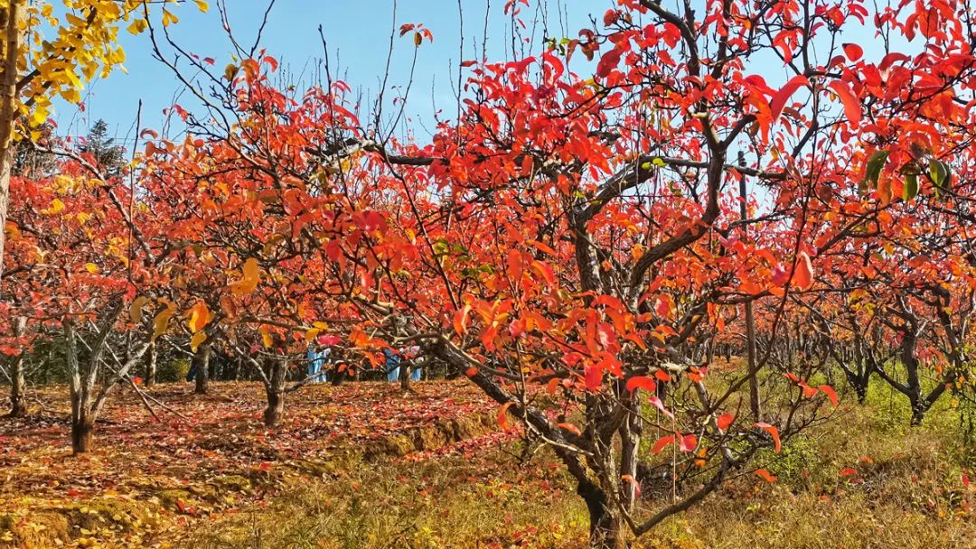 古诗云:远上寒山石径斜,白云生处有人家。停车坐爱枫林晚,霜叶红于二月花。这是赞美霜叶的诗句,用它来形容灌阳万亩梨园的红叶,一点也不为过。
