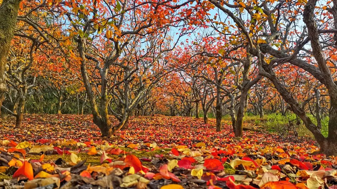 暖冬岁末,天高气爽,风和日丽,在桂林灌阳县城境内,出现了一处令人意想不到的绝美风景:灌阳的“后花园”——麒麟山和米珠山万亩梨园的梨叶经霜渲染,呈现出红黄褐紫斑斓色彩。一时间万山红遍,金碧辉煌,如诗如画,美不胜收。