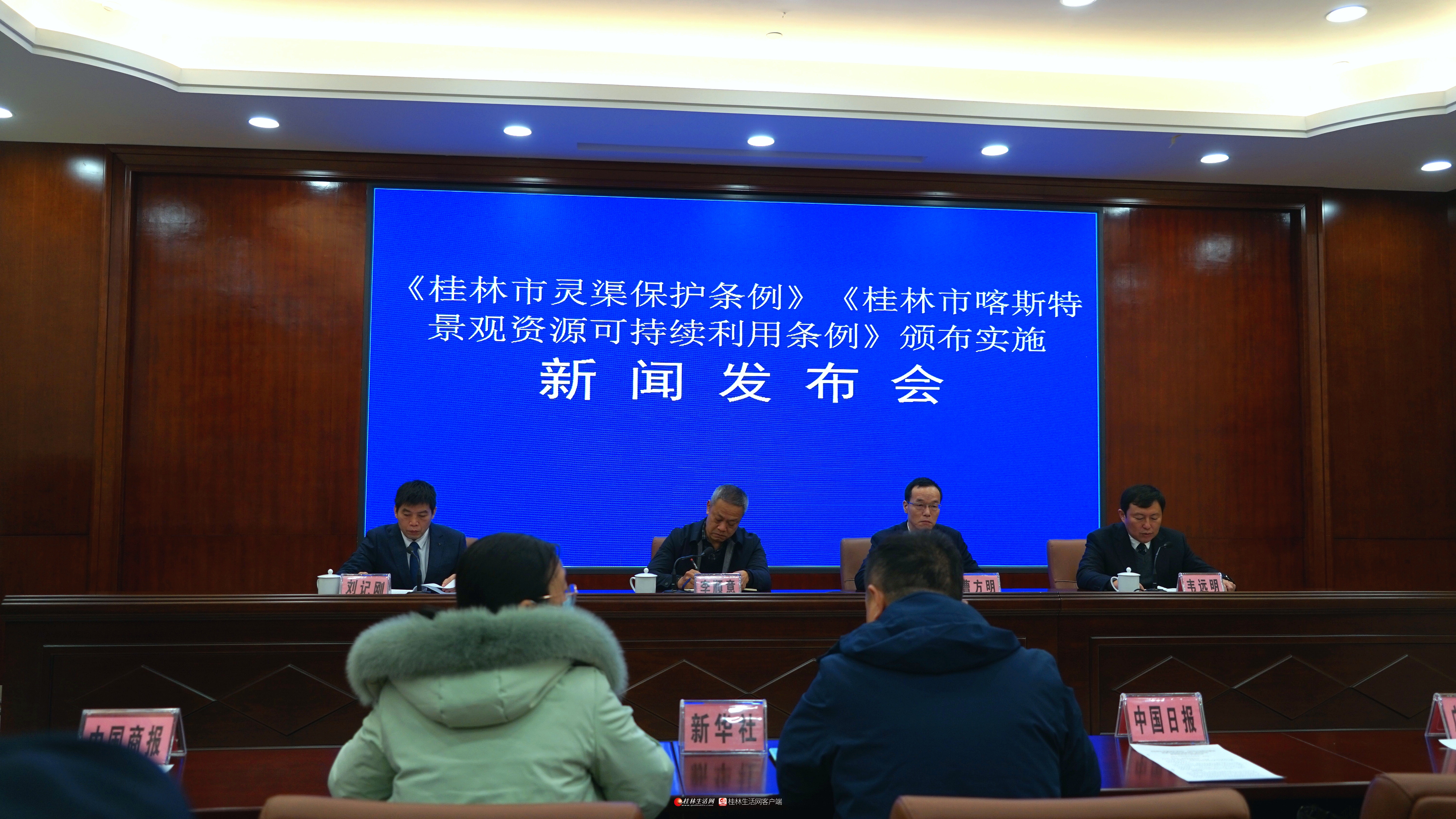 12月28日上午,《桂林市灵渠保护条例》《桂林市喀斯特景观资源可持续利用条例》新闻发布会在桂林市市政府召开。
