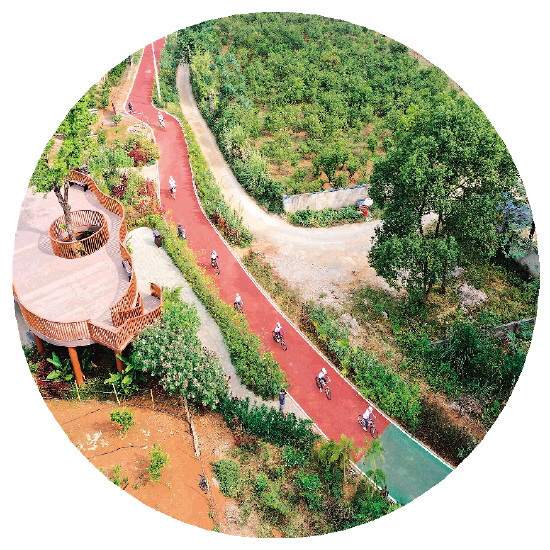 七星区漓韵侨乡田园综合体内的竹江休闲绿道。
