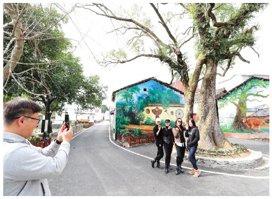 临桂区六塘镇岚岩村不断推进改造乡村风貌、挖掘文化元素、促进农旅融合的工作,走出了一条乡村振兴的新路子。图为络绎不绝的游客来到岚岩村参观游览。