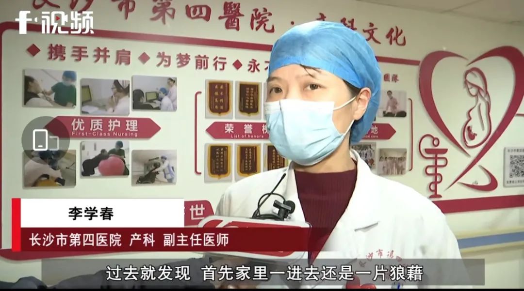 赶到现场的长沙市第四医院产科医生介绍:当时产妇躺在沙发上,孩子已经出生,但是脐带还没剪断,大人流了不少血,看起来很虚弱,丈夫在边上也是手足无措的样子。