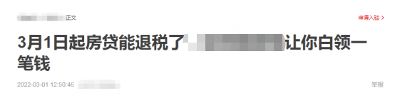 近日不少网络平台出现了许多类似“买房满一年有退税”、“有房贷的3月1日就可以退税”的吸睛文章和视频。对此,广西税务局回应称,请勿断章取义、片面误读!