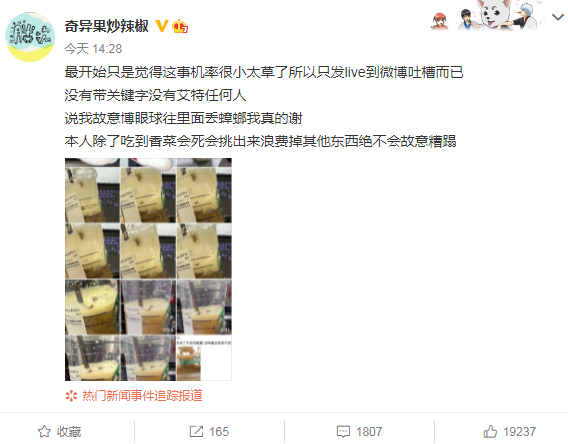 在星巴克饮品中喝出蟑螂一事,