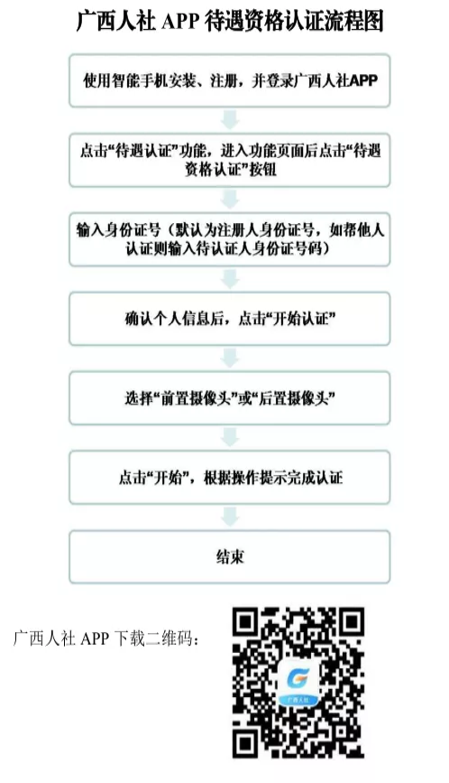 (一)“广西人社”手机APP自助认证。通过智能手机应用市场搜索“广西人社”或登录广西壮族自治区人力资源和社会保障厅网站(rst.gxzf.gov.cn)查看右侧快捷引导栏扫码下载安装、进行认证,认证流程图详见附件1。