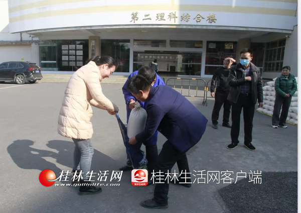 驻村工作队与村“两委”班子在广西师范大学帮助村民销售农产品