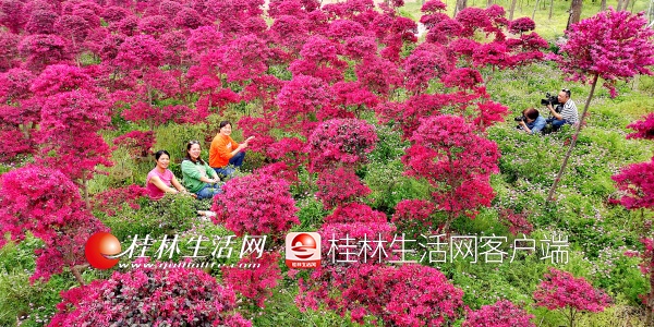 “园林里花团锦簇,一片艳红,特别美。像这样大片面积的红花檵木开花可不多见。”3月26日,游客王海芳和几个朋友相约来到园辉生态园林景观园,徜徉在花的海洋里,心情特别愉悦。在新街镇葛洞村园辉生态园林景观绿化工程公司园林里,红黄檵木、罗汉松等30多种花木,交相辉映,让人赏心悦目。