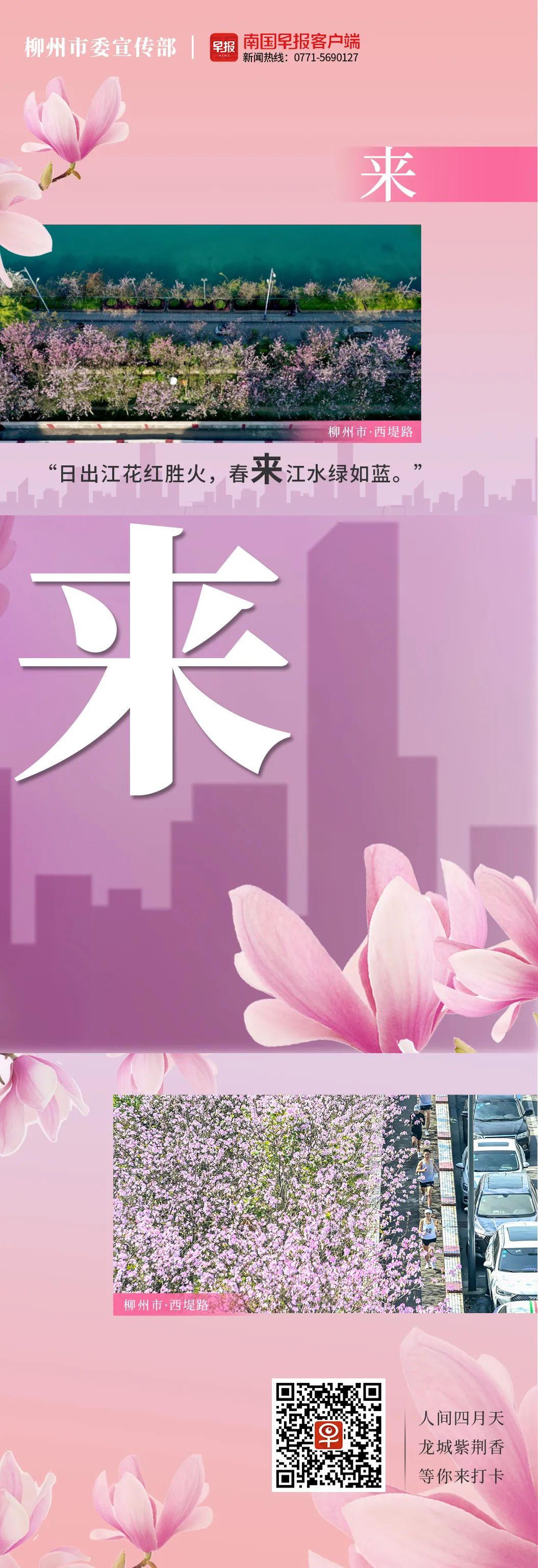 快带上你的手机、相机和那个想要一起赏花的人,去奔赴柳州这份春日限定的粉色浪漫吧!