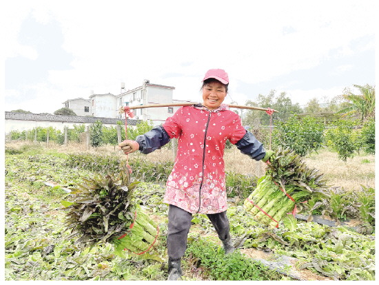 村民在田间挑运莴笋。记者刘健 摄