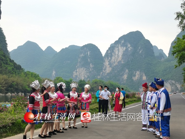在杨堤乡初心码头,山歌爱好者们把乡村振兴、民族团结一家亲、阳朔山水风光等相关内容编成通俗易懂的歌词,融入到美妙的山歌中,通过以最具民族特色的联唱、对唱、独唱等多种形式为群众激情献唱,展现了阳朔的生态美景和独具有壮乡特色的民俗文化,嘹亮的山歌在最美的山水间回荡。通俗易懂的歌词唱响了民族团结主旋律,也将民族团结唱入人心,更让群众领略了壮乡独特民族文化的无穷魅力。