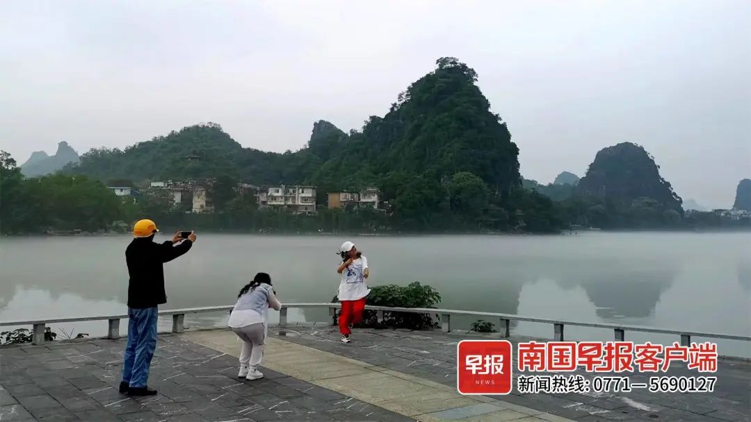 4月23日、24日清晨,来到漓江边的桂林市民和游客都忍不住拿起手机或相机,记录下笼罩在朦胧雨雾中浪漫的漓江。一幅幅诗意照片火速在朋友圈“圈粉”。