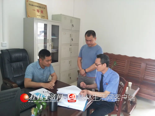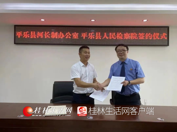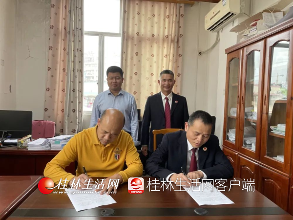 平乐县人民检察院党组书记、检察长盘金塶(右后),党组成员、副检察长韦茂清(右前)出席签约仪式