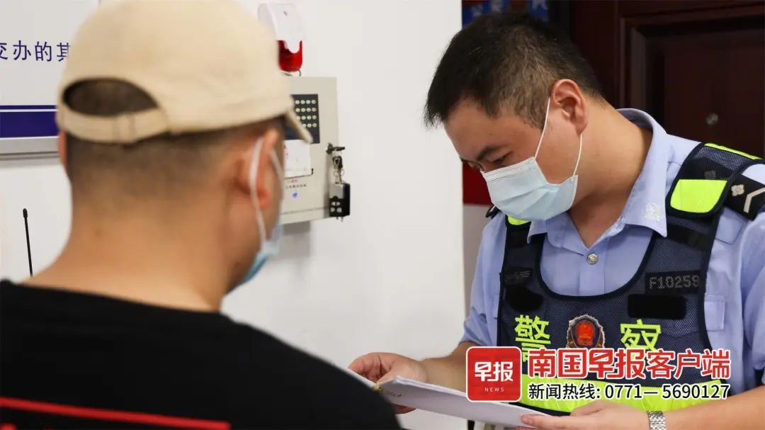 ▲南宁市公安局朝阳派出所的辅警在办理业务。