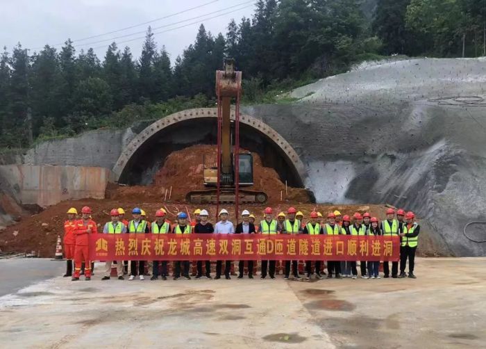 5月20日上午,龙城高速双洞互通D匝道隧道进口掌声雷动,鞭炮声与机械轰鸣声响彻云霄,双洞互通D匝道隧道进口顺利进洞,标志着龙城高速5座隧道全部实现进洞施工。