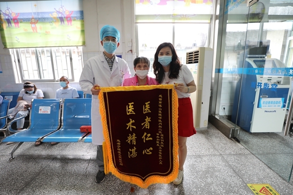 “屈主任,我和母亲今天是专程赶来感谢您,没有您和您的团队精心救治,我母亲的生命就危险了,南溪山医院的技术水平就是高!”6月2日上午,在广西壮族自治区南溪山医院呼吸与危重症医学科二病区门诊诊室的门口,已出院多日的于奶奶在女儿陪同下专程从临桂赶来南溪山医院答谢救命恩人------医院呼吸与危重症医学科二病区主任屈东明博士,并将一面写有“医者仁心,医术精湛”的锦旗亲自交到了屈主任手中。