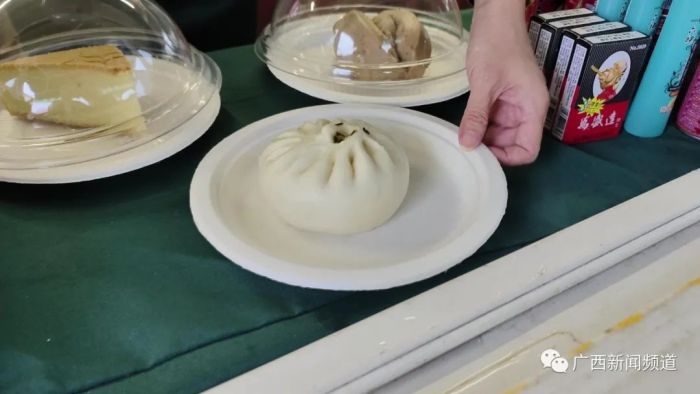 青秀山职工食堂直营点负责人 长江:从6月11日(今天)开始,青秀山风景区、南宁园博园直营点的面点、馒头、矿泉水等一些面点饮品共计是55种,对标了景区外,商业网点的平均价格率先地全面降价销售,平均的降幅是达到了40.92%,最高降幅是达到60%。