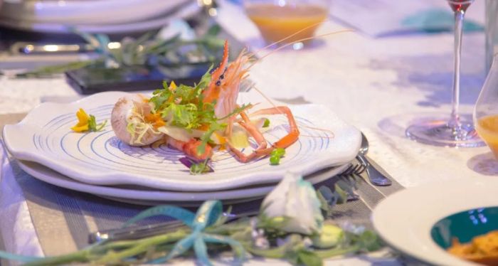 淡雅的鲜花点缀长桌,香醇的美酒在高脚杯中摇曳,由星级主厨打造的盛宴为宾客们带来味蕾上的极致享受。
