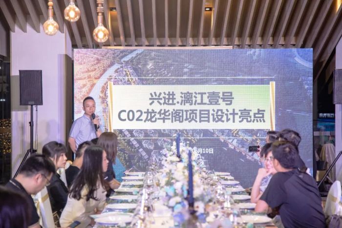 最后,兴进集团研发中心总经理林庆旭从产品的角度,为现场嘉宾进一步阐述了【龙华阁】洋房的创新理念以及产品的升级品质、户型亮点,将现场气氛推向高潮。