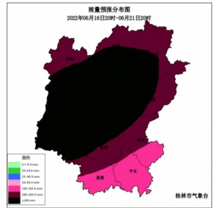 由于桂林前期雨量多,土壤含水量大,部分地区形成雨区叠加效应,致灾风险高。气象专家提醒: