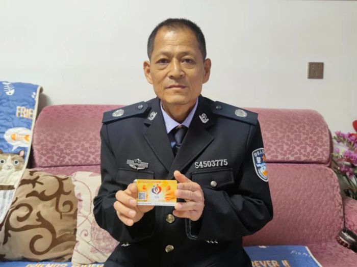 周海生前展示自己的人体器官捐献志愿登记卡。 记者莫俊 摄
