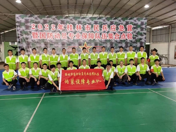 6月19日上午,桂林市人防伪装设障专业队在桂林警备区室内训练场,参加自治区国防动员专业保障队伍实兵点验。