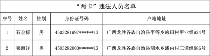 6月28日,桂林龙胜各族自治县公安局发布关于督促“两卡”违法犯罪人员投案自首的通告。