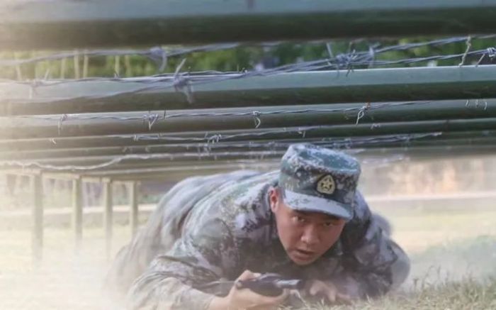 △今年5月,新兵钟镇聪进行匍匐训练。