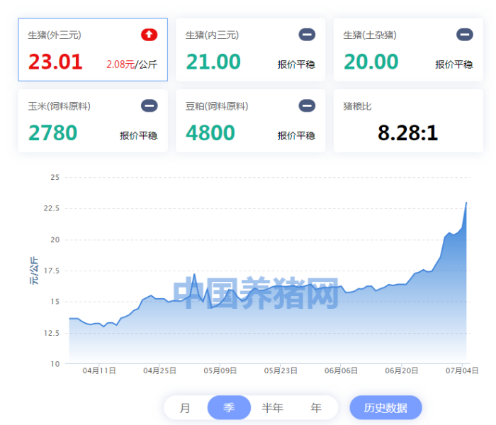 国家发展改革委价格司表示,国家一直高度关注生猪猪肉市场价格变化,努力防范价格大幅波动,维护市场平稳运行;要求大型养殖企业带头保持正常出栏节奏、顺势出栏适重育肥生猪,不盲目压栏,提醒企业不得囤积居奇、哄抬价格,不得串通涨价;明确表示将适时采取储备调节、供需调节等有效措施,防范生猪价格过快上涨,并会同有关部门加强市场监管,严厉惩处捏造散布涨价信息、哄抬价格等违法违规行为,维护正常市场秩序,促进行业长期健康发展。